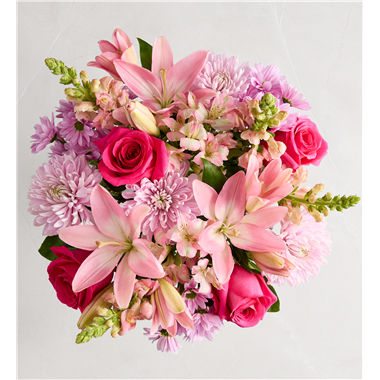 Thank Mom for a lifetime of comforting hugs with our Mother’s Embrace™ bouquet. Lovely pink and lavender blooms are hand-designed in a pink ceramic vase, creating a heartfelt expression of your feelings whether you're celebrating Mother’s Day together or sending a smile from miles away.